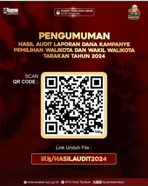 Berdasarkan Tanda Terima dan Berita Acara Penerimaan Hasil Audit Laporan Dana Kampanye Pemilihan Pasangan Calon Walikota dan Wakil Walikota Tarakan Tahun 2024 di Komisi Pemilihan Umum Kota Tarakan, disampaikan hasil audit laporan dana kampanye sebagai berikut > DOWNLOAD
