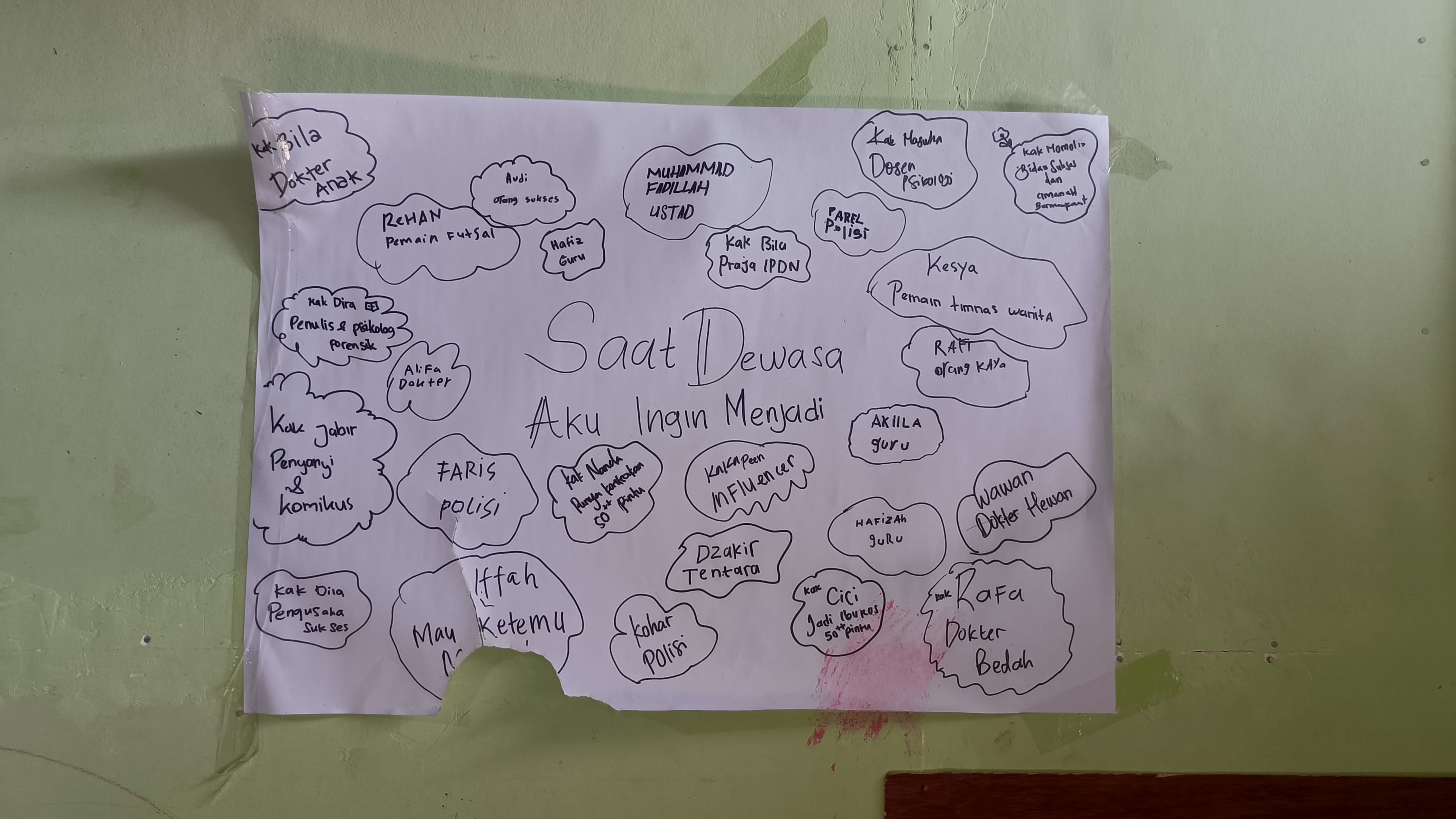Pandangan kami tertuju kepada selembar kertas karton yang penuh dengan tulisan cita-cita dari anak-anak di panti asuhan tersebut. Harapan dari anak-anak tersebut pun menjadi doa yang kami panjatkan dan juga kebaikan serta keselamatan untuk semua. Pembacaan doa bersama menjadi penutup dari rangkaian kegiatan ini, "Terima kasih, semoga kegiatan ini mendapatkan keberkahan dari Tuhan Yang Maha Esa," tutur Dedi. (humas julia, arief / foto: sukardi, argo)
