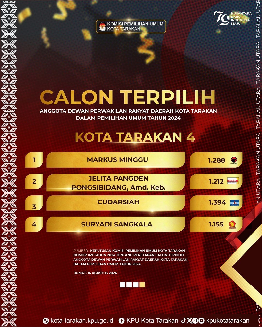 PENGUMUMAN CALON TERPILIH ANGGOTA DPRD KOTA TARAKAN DALAM PEMILIHAN SERENTAK TAHUN 2024