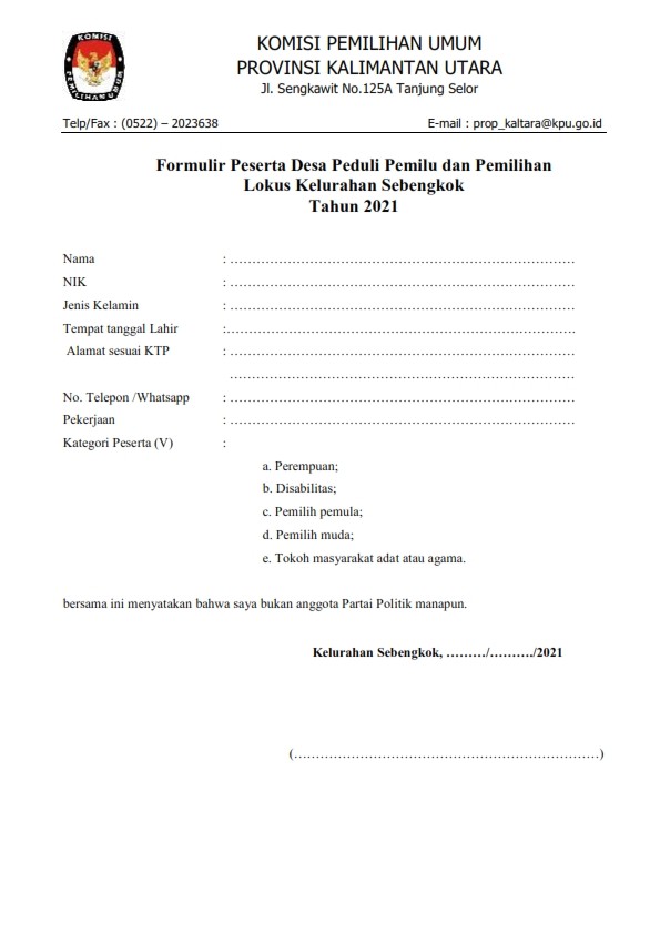 Pengumuman Pendaftaran Peserta Desa Peduli Pemilu dan Pemilihan Kelurahan Sebengkok