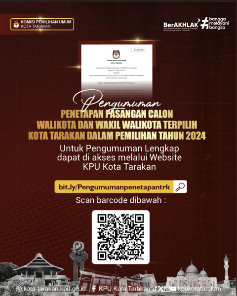 PENGUMUMAN PENETAPAN PASANGAN CALON WALIKOTA DAN WAKIL WALIKOTA TERPILIH KOTA TARAKAN DALAM PEMILIHAN TAHUN 2024