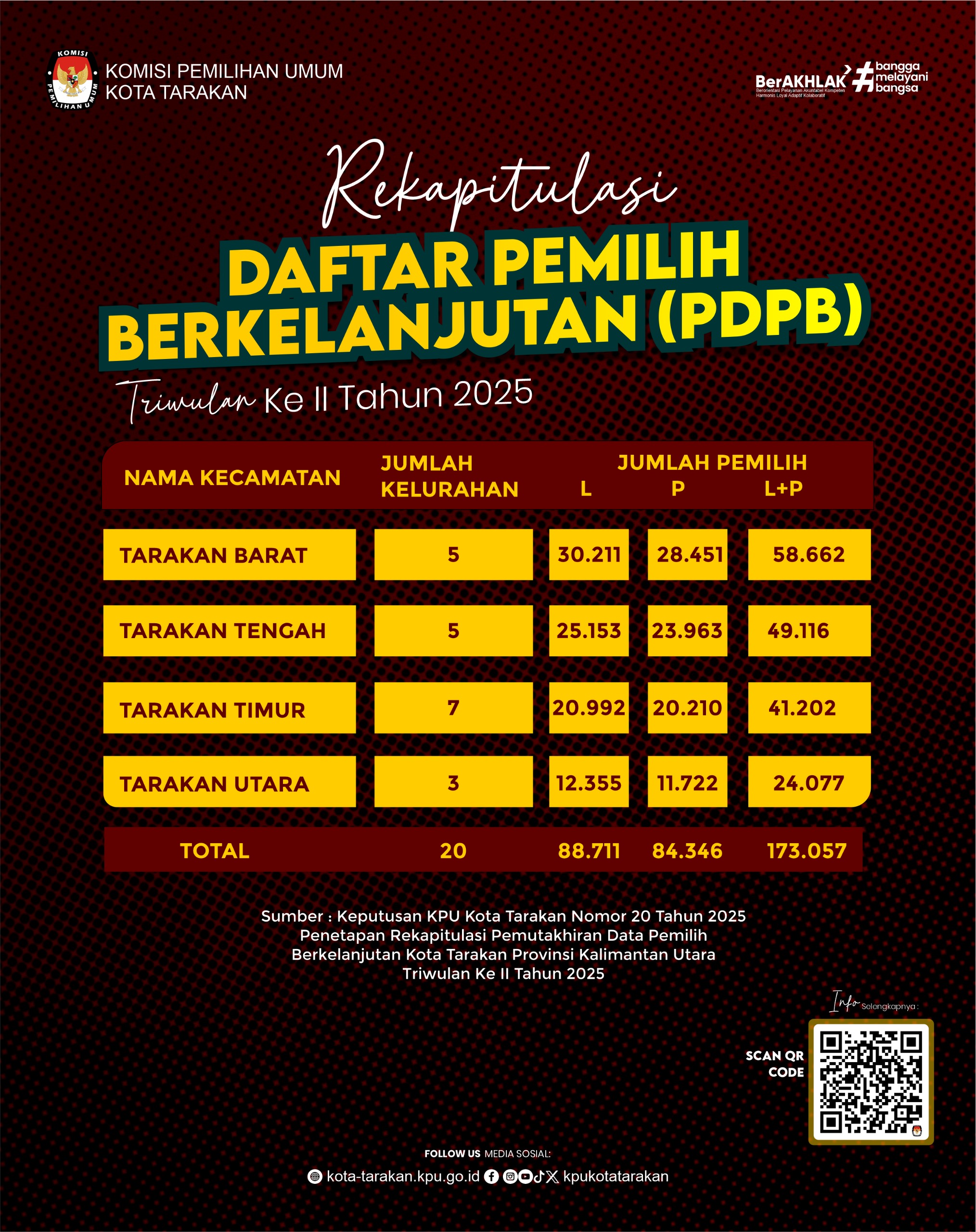 REKAPITULASI PEMUTAKHIRAN DATA PEMILIH BERKELANJUTAN (PDPB) KOTA TARAKAN TRIWULAN II TAHUN 2025