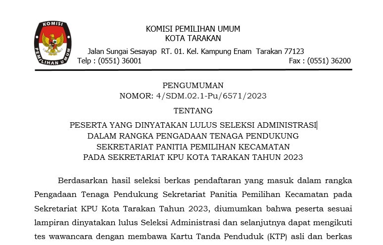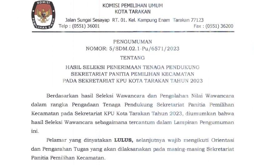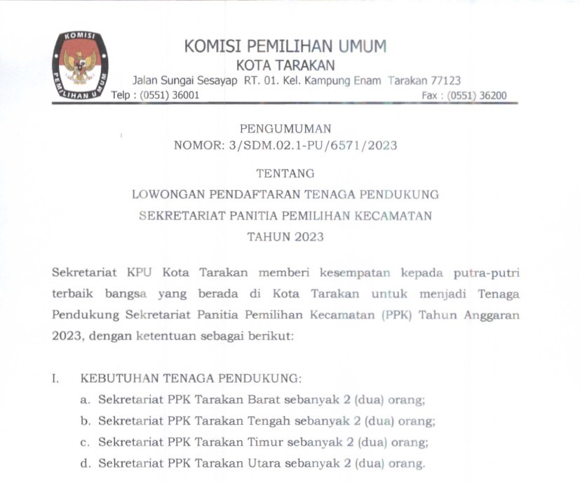 Pengajuan dimaksud dilaksanakan di Kantor KPU Kota Tarakan, Jalan Sei Sesayap RT.1 Kel. Kampung Enam Kec. Tarakan Timur Kota Tarakan.