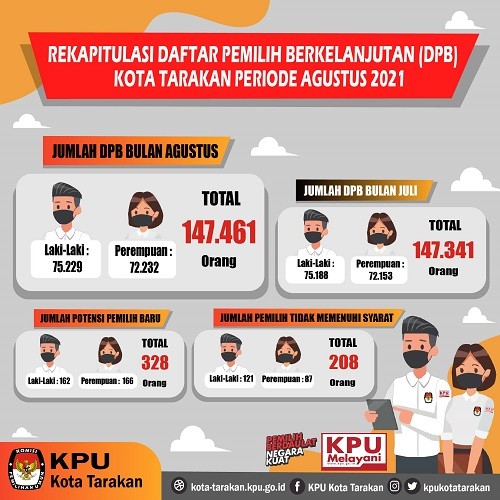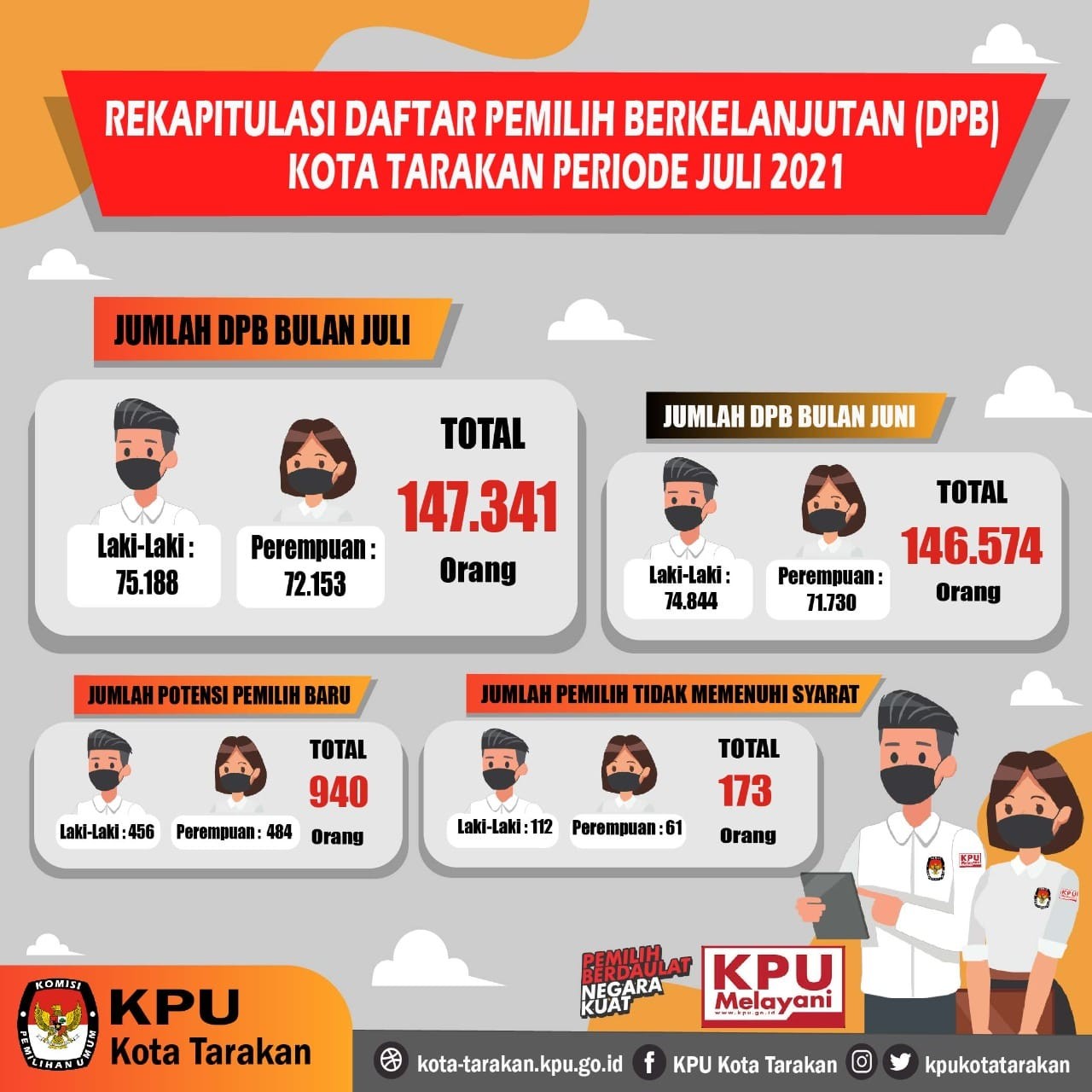 Rekapitulasi Daftar Pemilih Berkelanjutan Bulan Juli 2021 Kota Tarakan Jumat, 13 Agustus 2021 00:00 377 Berikut ini Hasil Rekapitulasi Daftar Pemilih Berkelanjutan Bulan Juli 2021 Kota Tarakan Baca Selengkapnya