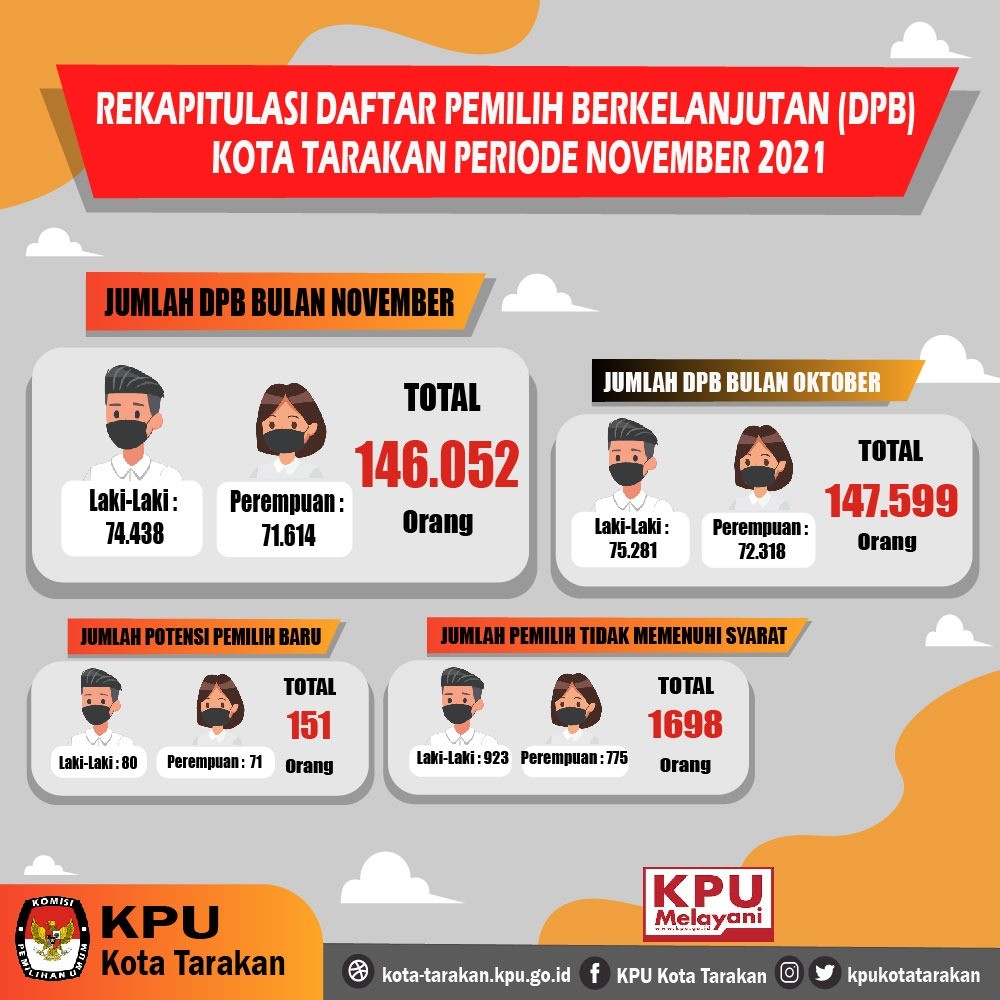 Rekapitulasi Daftar Pemilih Berkelanjutan Bulan November 2021 Kota Tarakan Selasa, 30 November 2021 00:00 362 Berikut ini Hasil Rekapitulasi Daftar Pemilih Berkelanjutan Bulan November 2021 Kota Tarakan Baca Selengkapnya